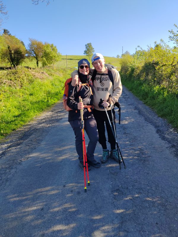 Matkalla tapasin viime yön vieruskaverini Dorothean, jonka kanssa kuljimme jonkin matkaa. Hänen seurassansa ollut nuoremman naisen tapasin matkalla uudelleen, kun hän tuli pyytämään tulkkaus apua. Hän oli liettualainen Monica ja oli ensimmäisellä vaelluksellaan. Ulkonäöstä päätellen teki varmaankin mallin töitä. Huvittavinta oli, kun hän kertoi täyttäneensä 30- vuotta huhtikuun 17 päivä, kun minä taas täytin 16. päivä tuplaten eli 60.